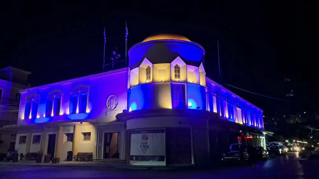 Στα μπλε χρώματα φωτίστηκε το Δημαρχιακό Μέγαρο Καλύμνου για την εθνική επέτειο της 28ης Οκτωβρίου
