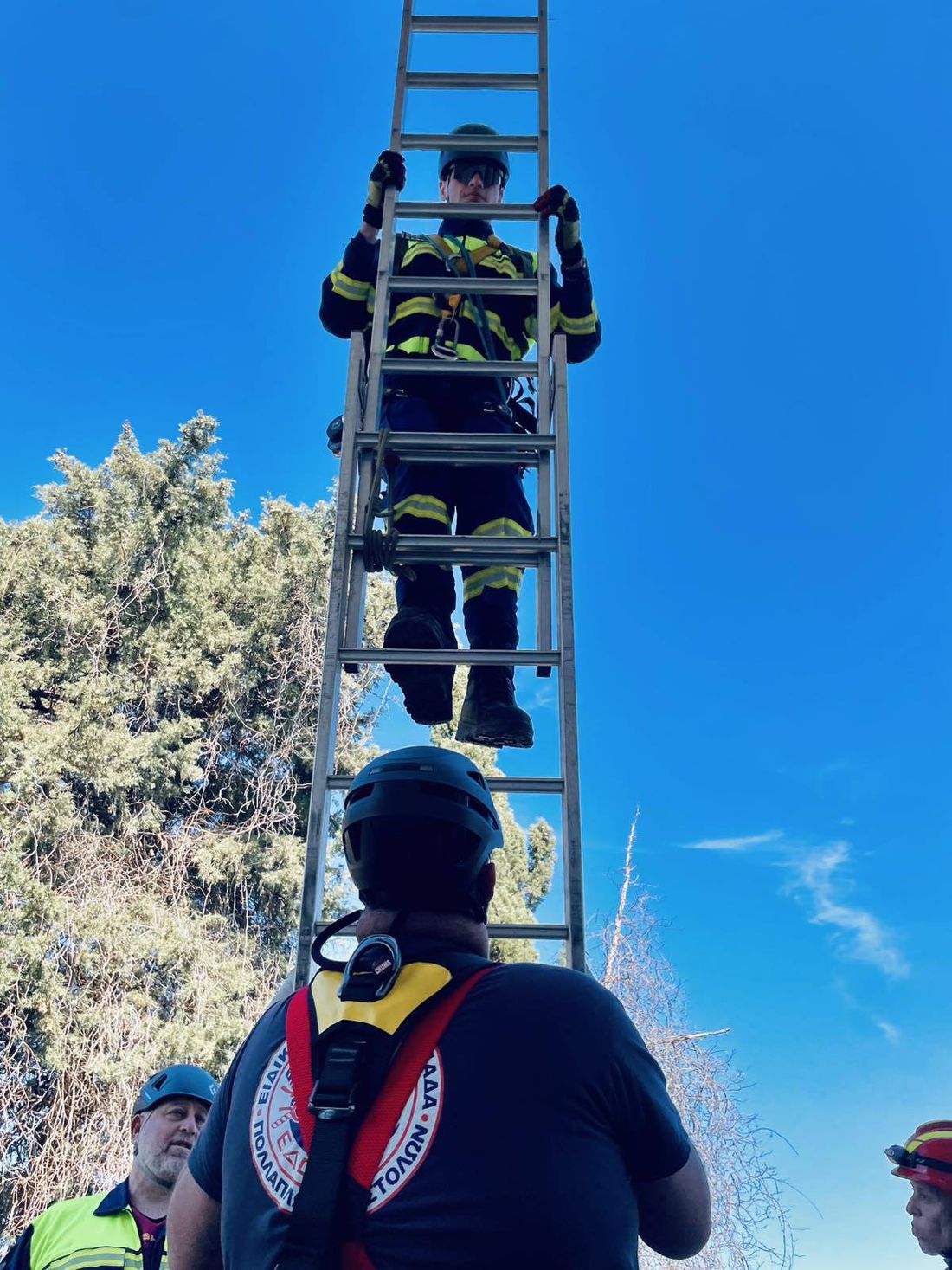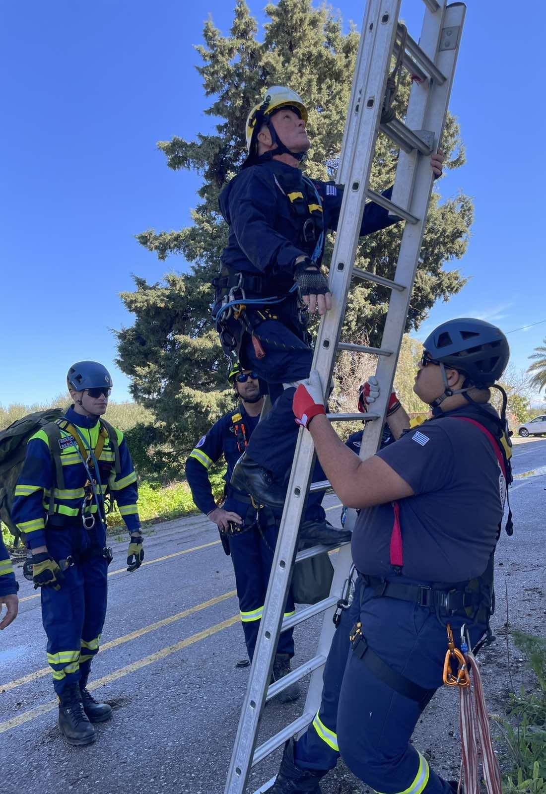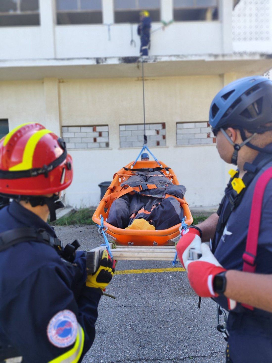 Τα μέλη της Λέσχης εκτέλεσαν σενάρια διάσωσης με χρήση φορείου , απεγκλωβισμό μέσω κλίμακας, καθώς και τεχνικές καταρρίχησης και διάσωσης με σχοινιά, εφαρμόζοντας διαδικασίες ασφαλούς αγκύρωσης, ελέγχου καθόδου και συντονισμένης μεταφοράς τραυματία.