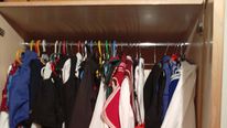 Δίπλα στο συρταρένιο κομοδίνο, ήταν τα σύνεργα της ραπτικής. Πολύχρωμα μασούρια, μακαράδες, κώνοι, κουβαρίστρες από κλωστές, πατρόν, κουμπιά, κόπιτσες, φερμουάρ, βελόνες, καρφίτσες, μαγνήτες, παραμάνες, δακτυλήθρες, σούστες, κοψέδες, σαπουνάκια για το σημάδι, μεζούρα, ξύλινο τρίγωνο και χάρακας, τρέσες, κορδέλες, δαντέλες, λάστιχο, ψαλίδια, μικρό για το ξήλωμα και μεγάλο για το κόψιμο, καθώς και ξυραφάκια, για τα ψιλά ξηλώματα. Πάντα υπήρχε μέσα στα συρτάρια της ραπτομηχανής και η βελονοθήκη, μαζί με την καρφιτσομάνα, αυτή λεγόταν και πελότα και ήταν στερεωμένη στο μπράτσο της μοδίστρας.