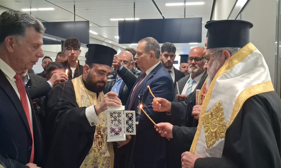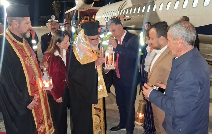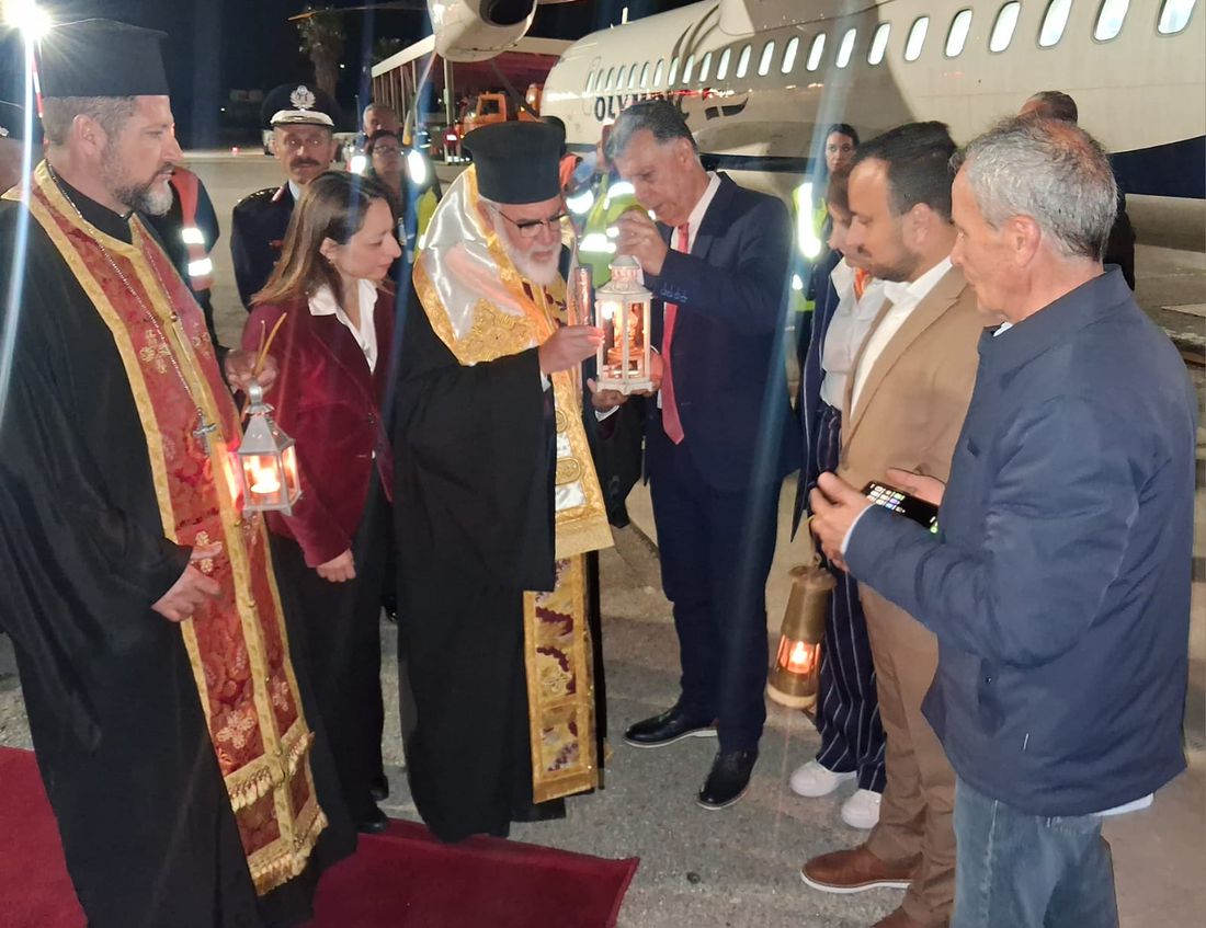 Στο αεροδρόμιο της Κω επικράτησε κλίμα βαθιάς κατάνυξης και συγκίνησης, καθώς το Άγιο Φως έγινε δεκτό με τιμές από τον μητροπολίτη κ. Ναθαναήλ και εκπροσώπους των τοπικών Αρχών που υποδέχθηκαν το φως της Ανάστασης, το οποίο αποτελεί ένα από τα πιο σημαντικά και συμβολικά στοιχεία της Ορθόδοξης παράδοσης.