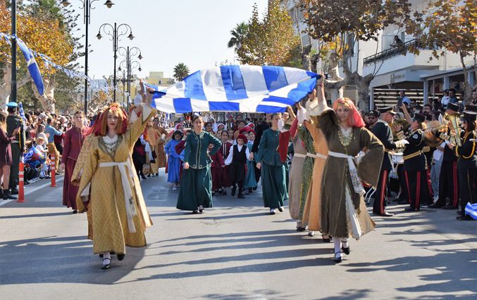 Ώρα 13.00: Παρουσίαση Εθνικών Τοπικών χορών στην Πλατεία Ελευθερίας από τα Λύκεια και Γυμνάσια της πόλης Κω και το Παράρτημα του Λυκείου Ελληνίδων
