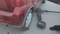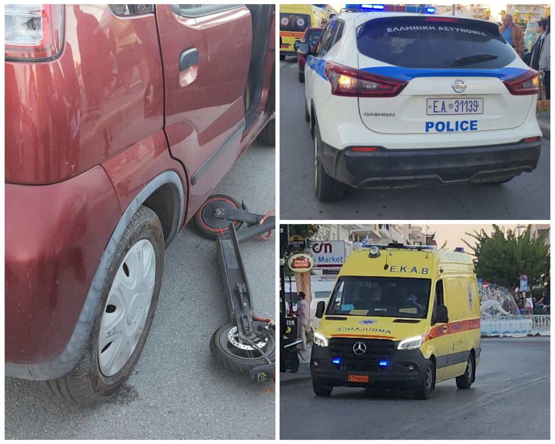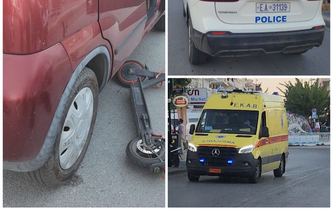 Από την σύγκρουση τραυματίστηκε η οδηγός του πατινιου που μεταφέρθηκε με ασθενοφόρο στο νοσοκομείο (δεν έχει κάτι σοβαρό).