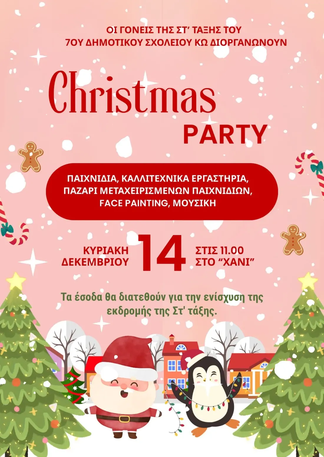Την Κυριακή 14 Δεκεμβρίου, στις 11:00 το πρωί, στο «Χάνι», οι γονείς της ΣΤ’ τάξης του 7ου Δημοτικού Σχολείου Κω διοργανώνουν ένα χαρούμενο και γιορτινό Christmas Party ανοιχτό για μικρούς και μεγάλους.